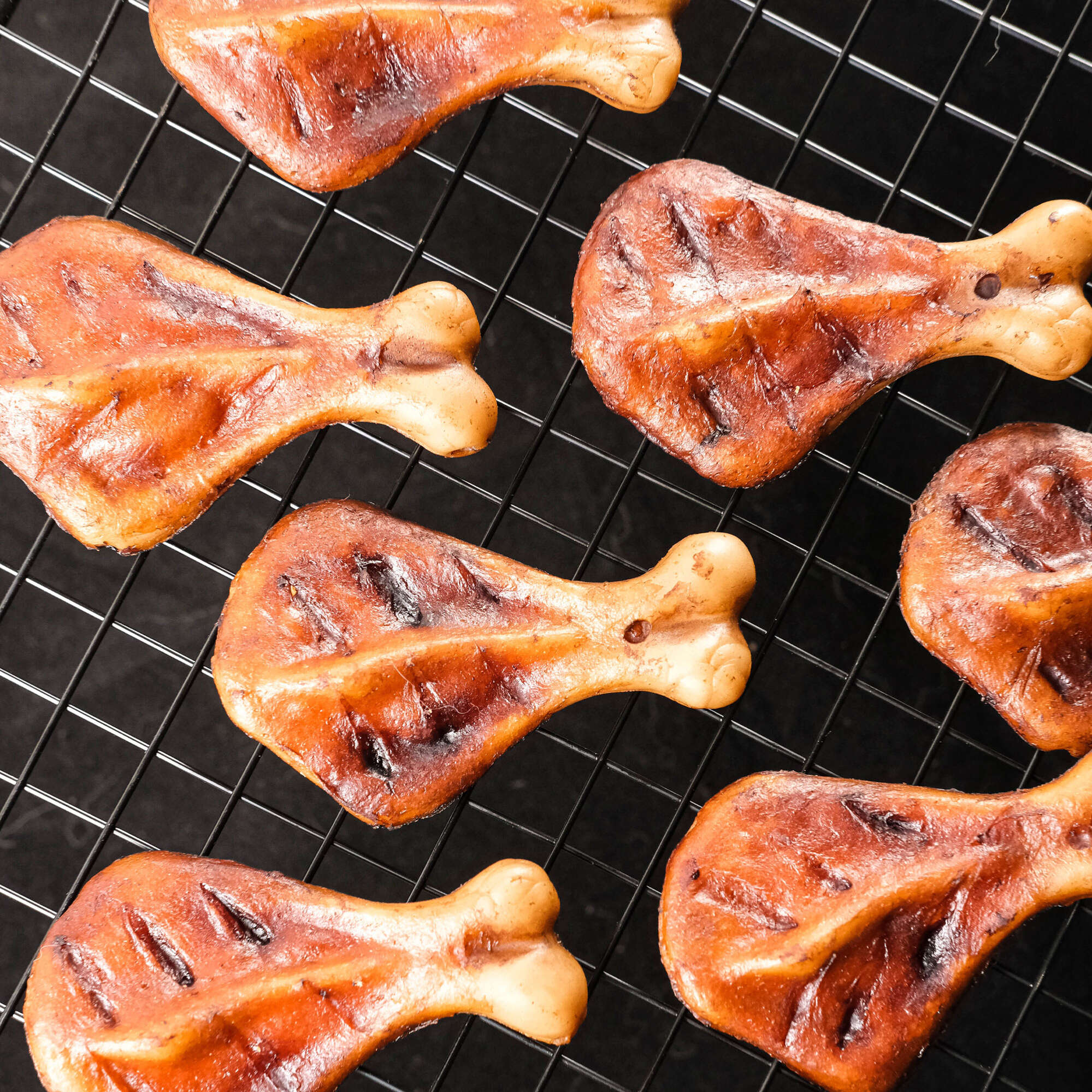 Deliciosa chuleta de NutraDog BBQ para perros, elaborados con ingredientes naturales, sin cereales y con alto nivel de proteínas, ideales como recompensa para consentir a tu mascota.