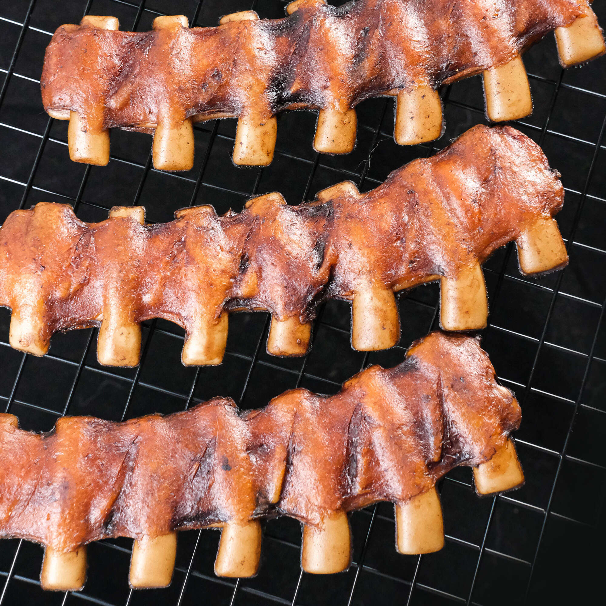 Delicioso costillar de NutraDog BBQ para perros, elaborados con ingredientes naturales, sin cereales y con alto nivel de proteínas, ideales como recompensa para consentir a tu mascota.