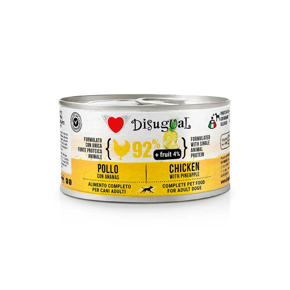 Disugual Fruit Conejo con Banana Lata para Perros esta comida húmeda es una exquisita combinación de ingredientes naturales diseñada para ofrecer a tu perro adulto una dieta equilibrada, nutritiva y deliciosa. Esta receta única fusiona carne de conejo de alta calidad con el dulzor natural de la banana, aportando proteínas magras y energía saludable en cada ración. Formulada con materias primas seleccionadas y fruta fresca, este alimento húmedo proporciona beneficios digestivos y nutricionales, ideal para perros con paladares exigentes o necesidades alimenticias especiales. Además se elabora sin conservantes ni colorantes añadidos, y está libre de harinas animales, vegetales y subproductos emulsionados, lo que garantiza un perfil nutricional más puro y mejor tolerado por el organismo canino.