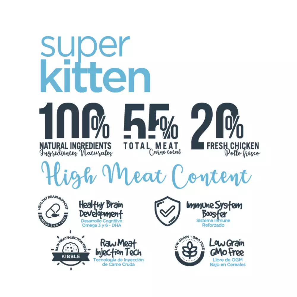 La variedad Fresh Mediterranean Blend Super Kitten es una receta creada especialmente para gatitos bebés. Esta receta está elaborada con verdadera carne fresca y sus principales ingredientes son pollo fresco 20%, carne de pollo deshidratada, carne de cerdo deshidratada 8%, carne deshidratada de cordero.