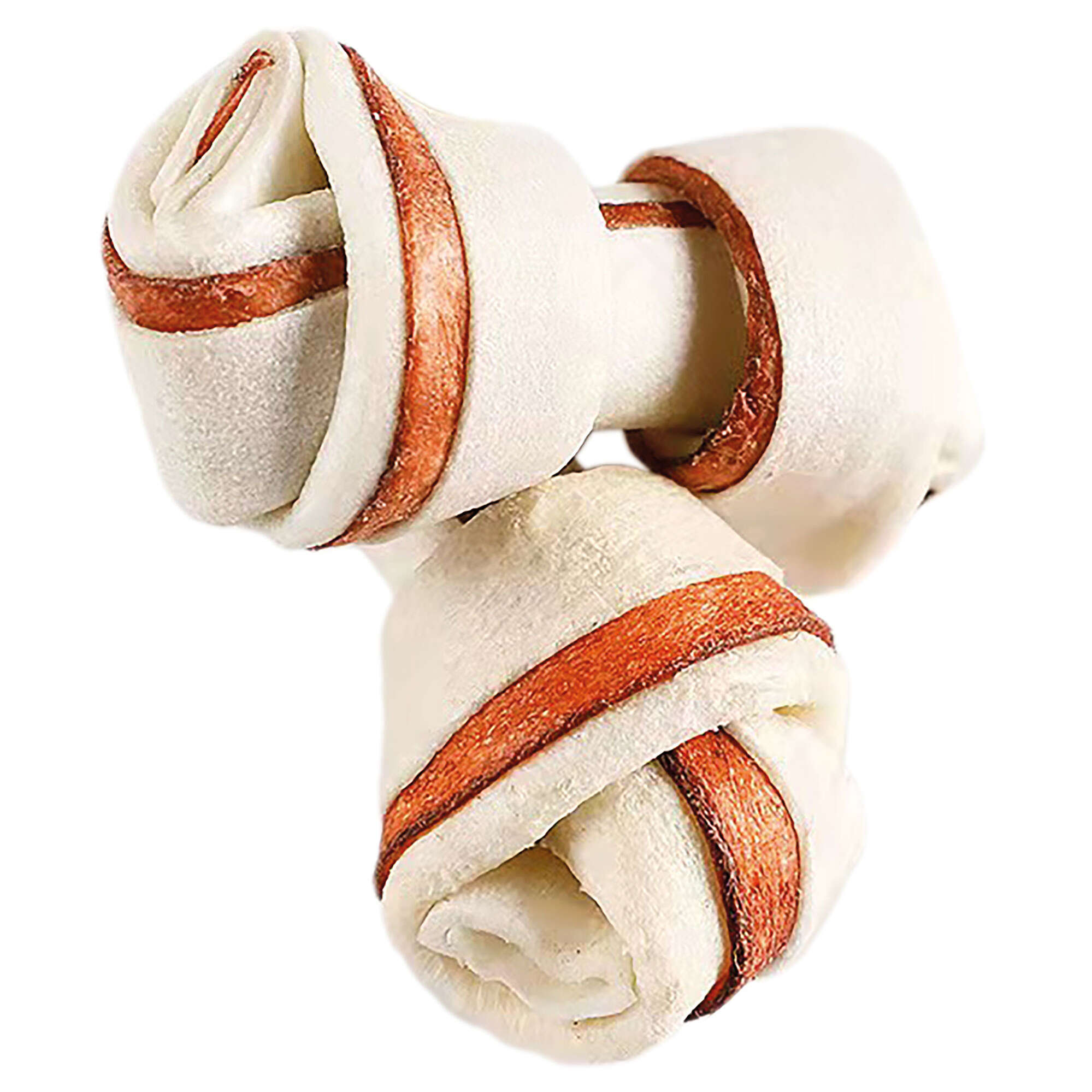 Huesos de piel con nudo sabor a batata NutraDog, hechos con batata que los hacen irresistibles para tu perro. Huesos de 8 cm y 20-25 g, los nudos ayudan a mantener entretenido durante más tiempo a tu mascota reduciendo el estrés y el aburrimiento.