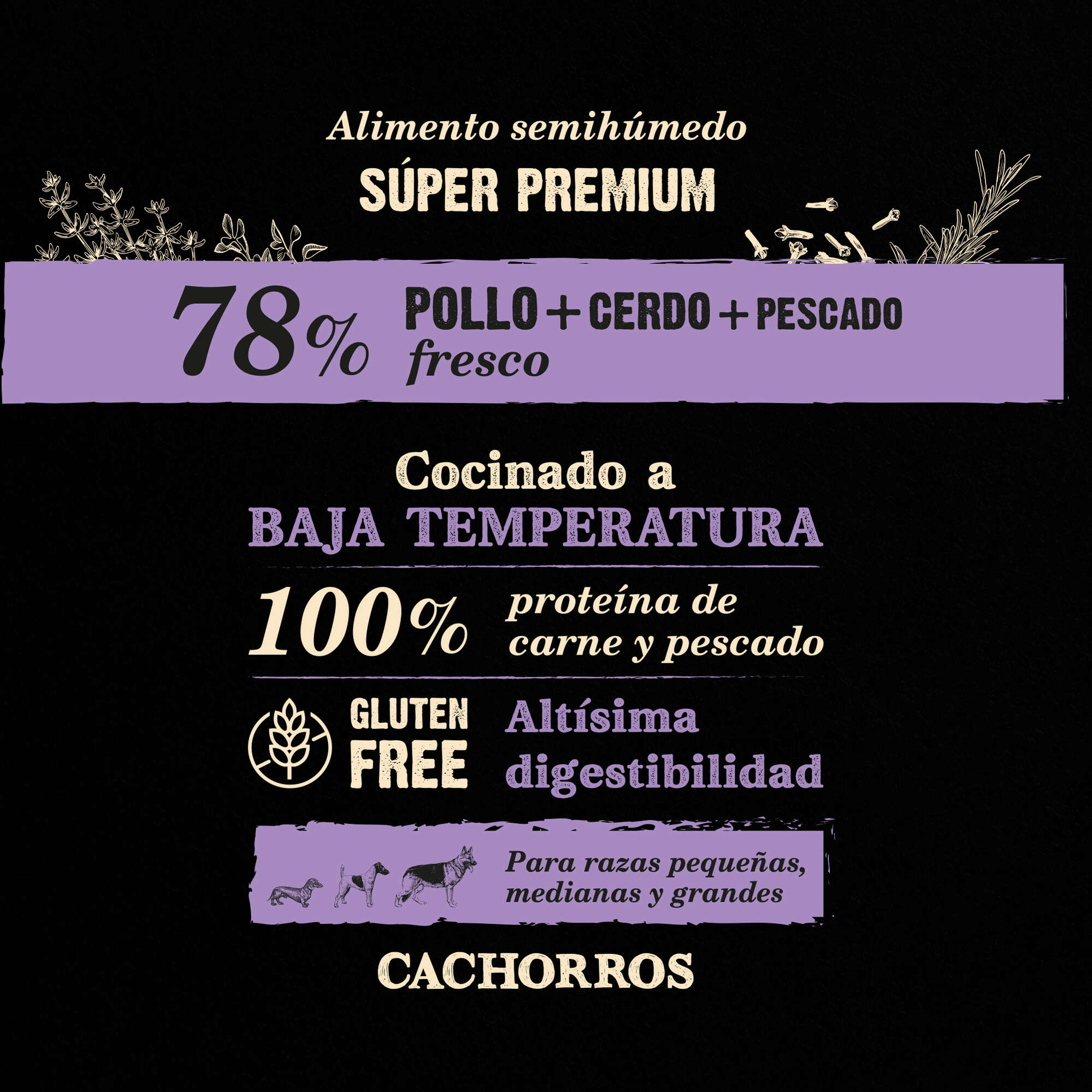 Alimento semihúmedo para cachorros pollo, cerdo y pescado 78% NutraDog WILD