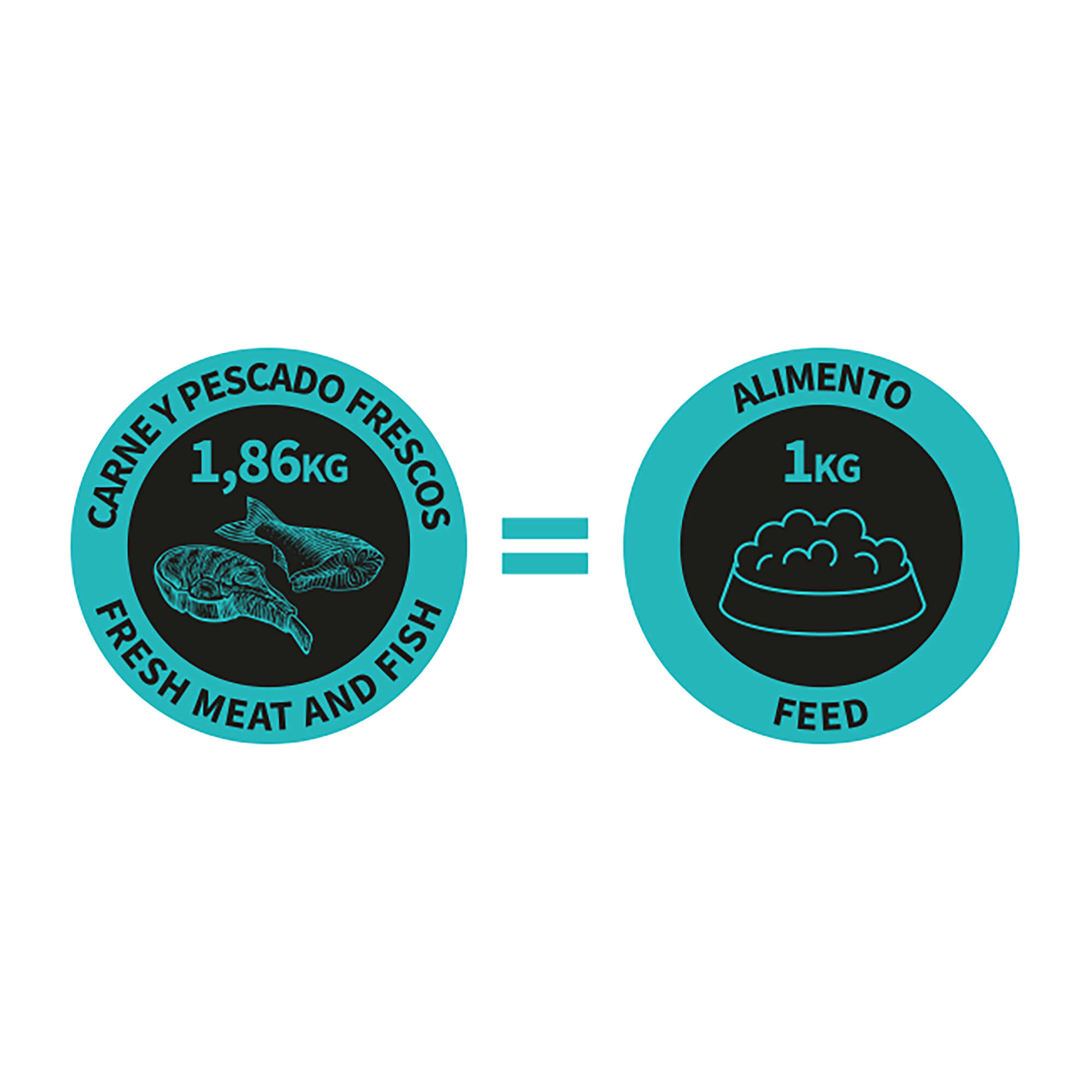 Composición: 55% pescado fresco (alacha (Sardinella aurita), caballa (Scomber scombrus), jurel (Trachurus spp.), sardina (Sardina pilchardus)), 20% pollo fresco, almidón hidrolizado, tocoferoles de aceites vegetales, extracto de romero, huevo deshidratado, aceite esencial de orégano, tomillo, clavo, romero, canela Ceylán. ADITIVOS/kg: Vitamina A (3a672a): 22.726 UI, vitamina D3 (3a671): 1.450 UI, vitamina E (3a700): 454 UI, zinc (3b603): 100 mg, hierro (3b103): 72 mg, manganeso (3b503): 36 mg, cobre (3b405): 7,2 mg, yodo (3b201): 1,27 mg.