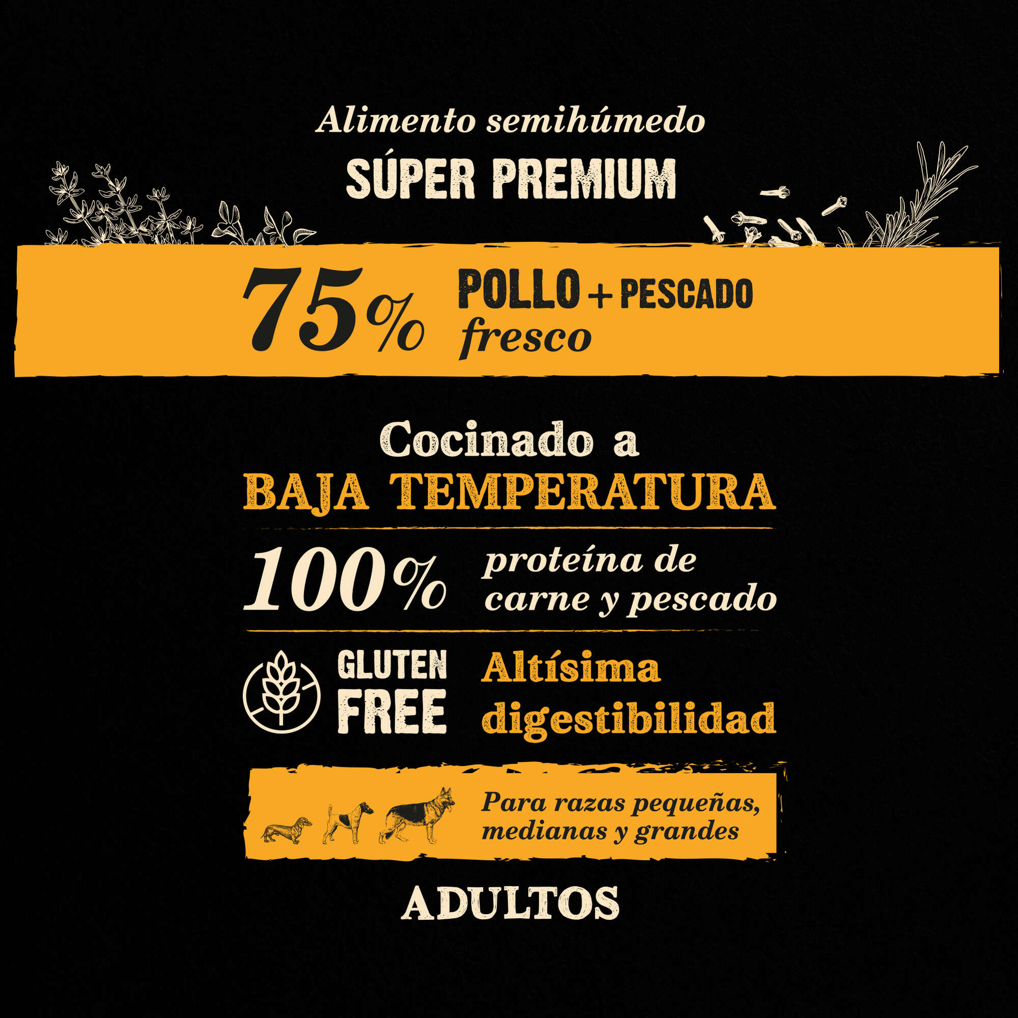 Alimento semihúmedo para perros adultos pollo y pescado 75% NutraDog WILD